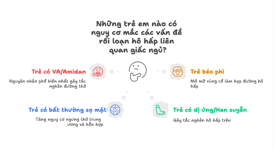 - Có VA/amidan lớn, béo phì, hoặc hội chứng di truyền ảnh hưởng đường thở.
