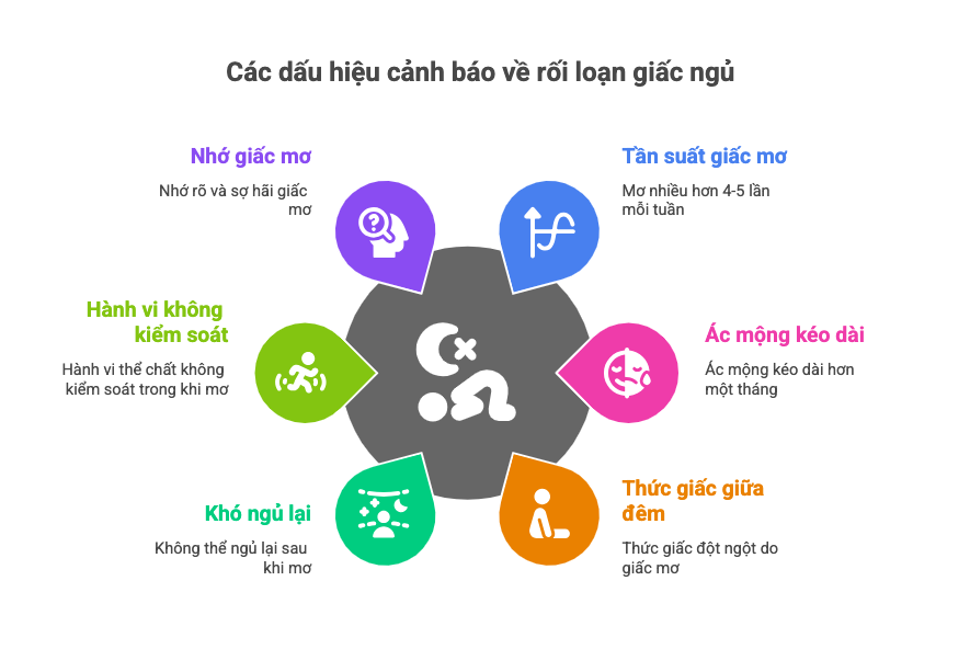 - Mơ gây tỉnh giấc, khó ngủ lại, mệt mỏi kéo dài
