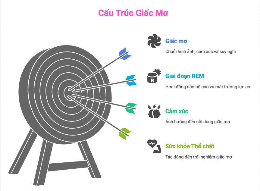 Giấc mơ là những chuỗi hình ảnh, cảm xúc và suy nghĩ diễn ra trong khi bạn đang ngủ. Phần lớn giấc mơ xảy ra trong giai đoạn chuyển động mắt nhanh – REM sleep (Rapid Eye Movement) – một trong bốn giai đoạn của chu kỳ giấc ngủ, khi hoạt động não bộ tăng cao và cơ thể tạm thời mất trương lực cơ.