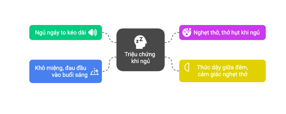 - Nghẹt thở, thở hụt khi ngủ, ngưng thở từng lúc